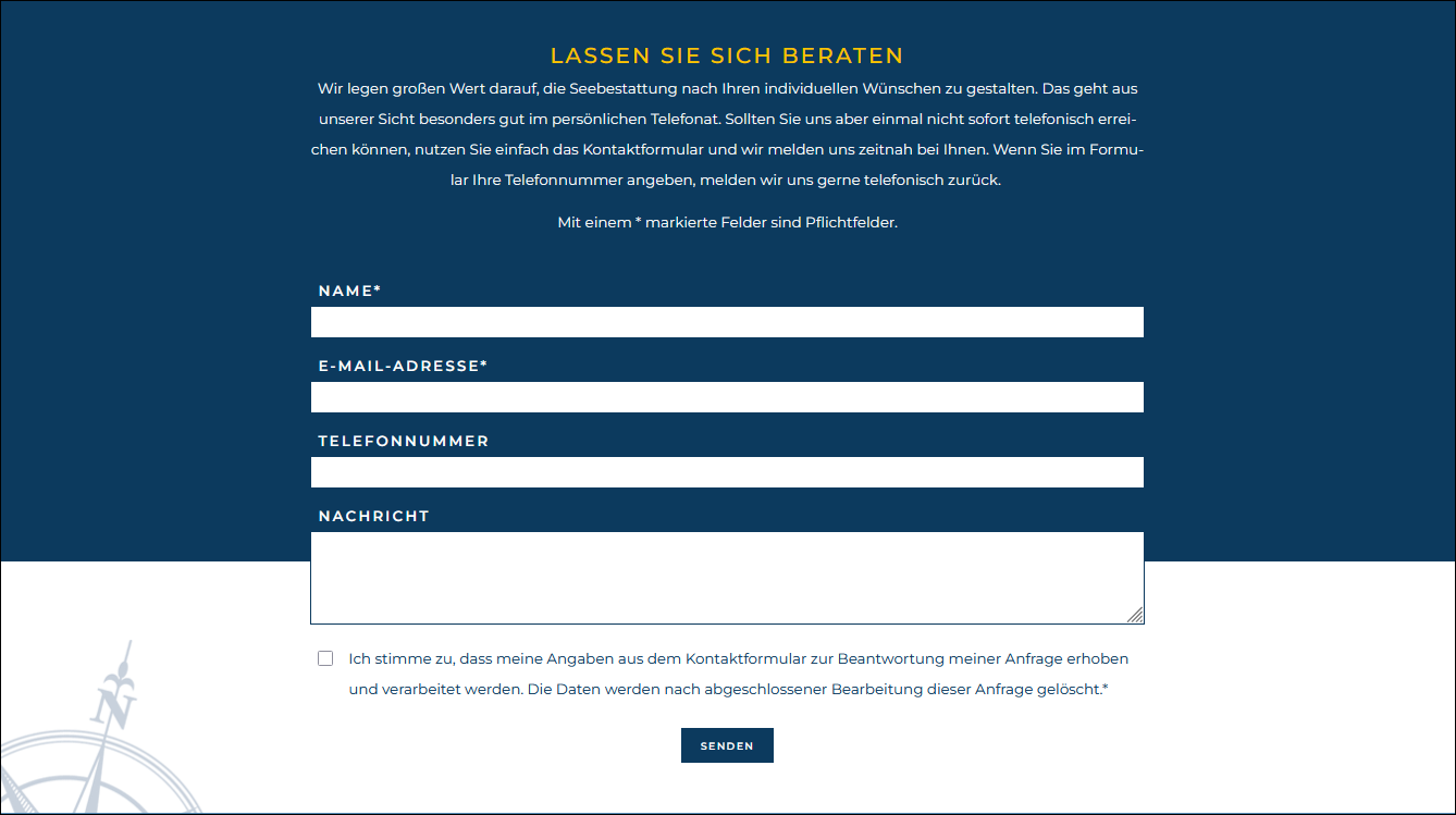 Auf der Internet-Seite geht es um Bestattungen auf See.